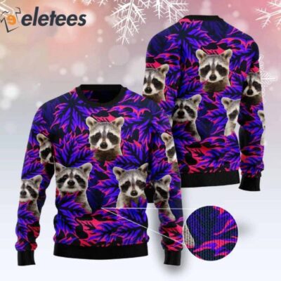 Raccoon Leaves Purple Ugly Christmas Sweater